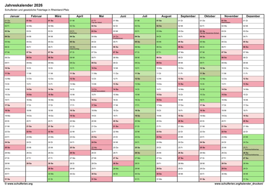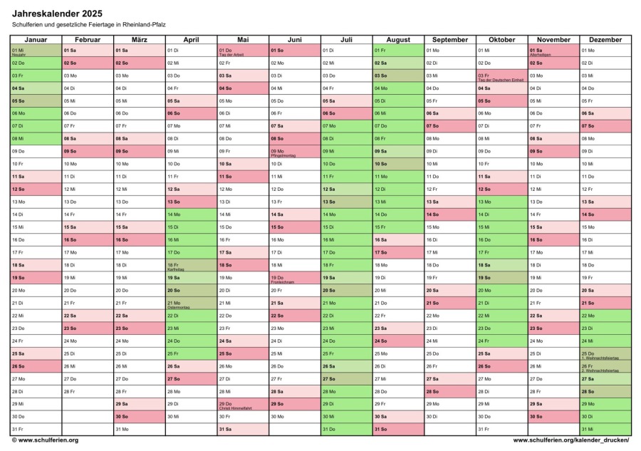 Ferienkalender Rheinland-Pfalz